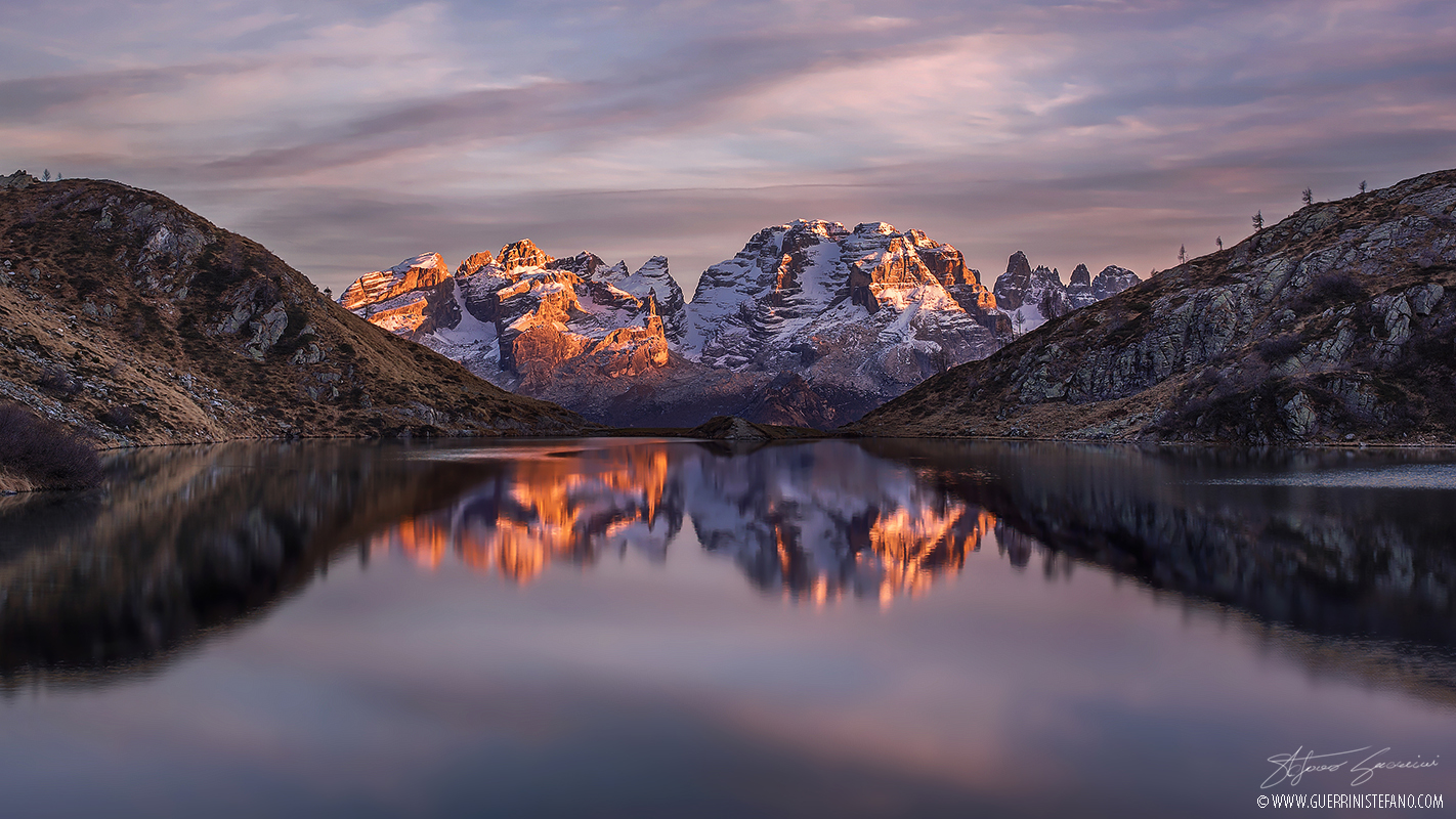 This is one of sunset images that I took on the Ritorto lake on last November 2015! The sun went down from the right of the image, the illumination of the Brenta mountains was absolutely stunning!