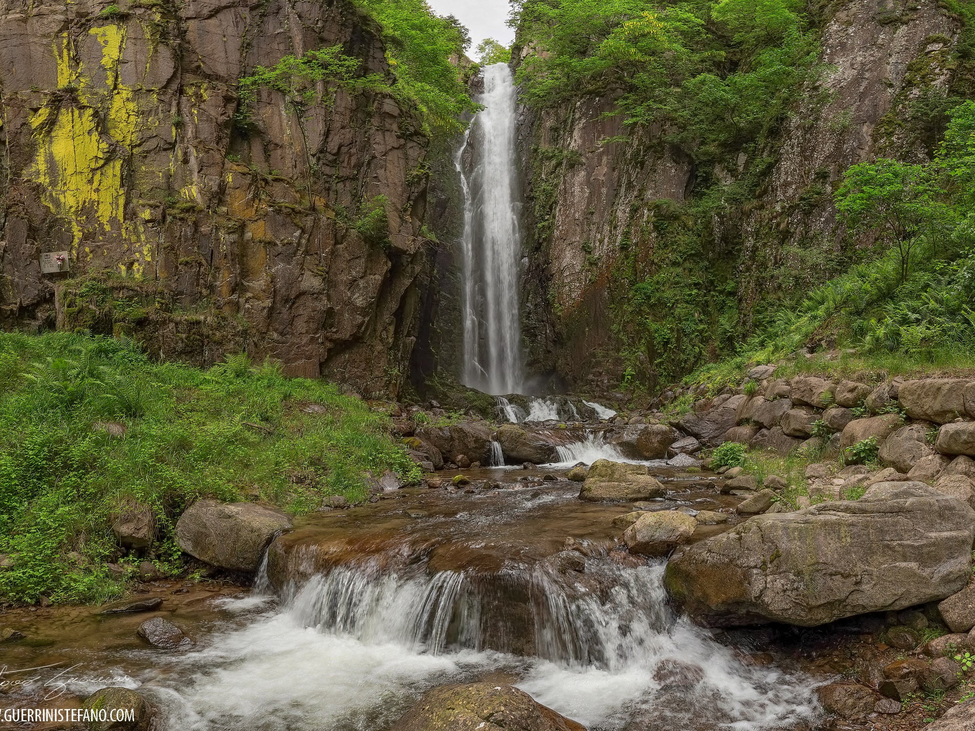 Si presenta di fronte all’improvviso a chi percorre il sentiero per raggiungerla. Lascia a bocca aperta, la sua maestosità è accompagnata dal fragore delle acque che cadono sbattendo sulla roccia! Il rumore è amplificato dalla vallata che si restringe proprio in prossimità della cascata!