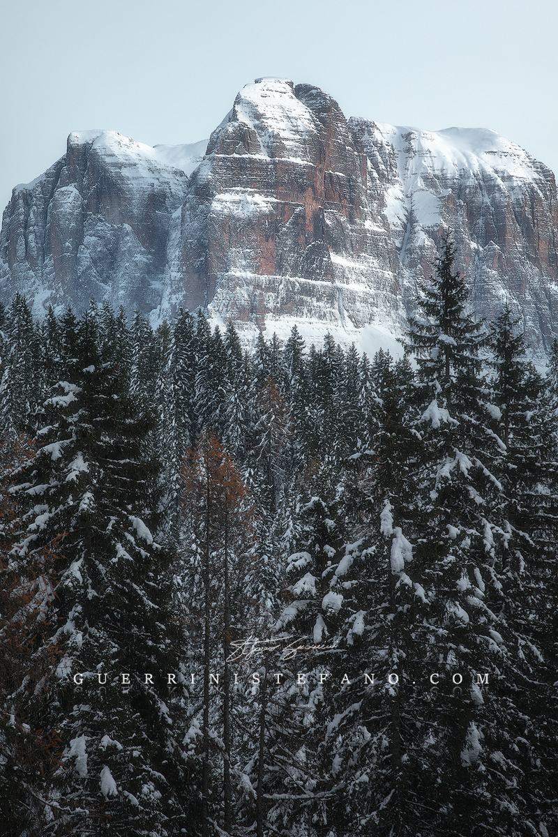 Ho utilizzato un’ottica con lunghezza focale attorno ai 200mm per cercare di riempire bene il fotogramma con il maestoso Crozzon di Brenta. Nella parte bassa, le distese di pini della valle in cui mi trovavo completano l’inquadratura.