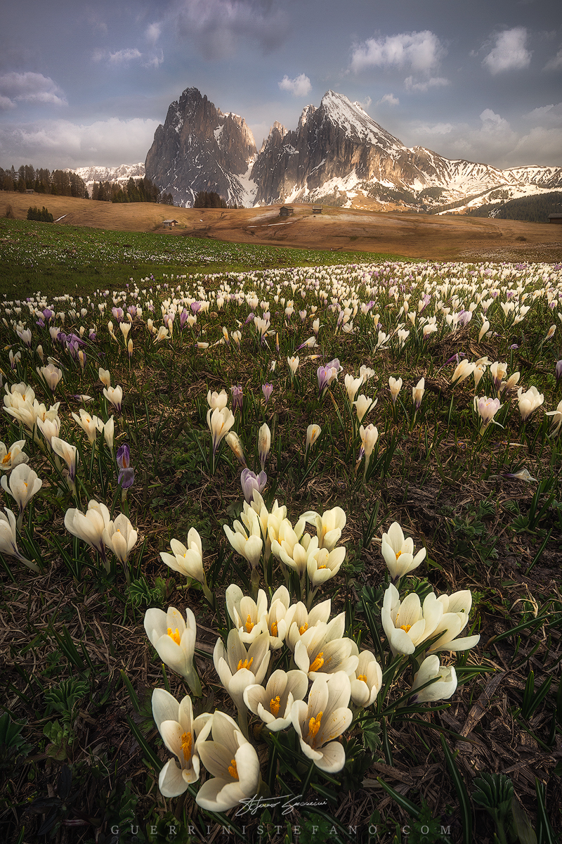 Alpe di Siusi – Seiser Alm – Alto Adige. Primavera e focus stacking, Crocus e montagna, sono binomi imprescindibili per chi, appassionato di fotografia, si cimenta a fotografare i prati fioriti della nostra bella regione in questo periodo! Il controllo delle distorsioni ottiche e della prospettiva sono la chiave per ottenere un’immagine d’impatto!