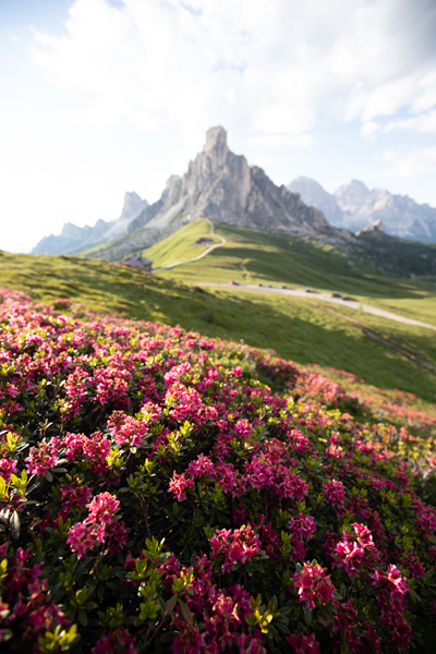 Durante un’uscita organizzata al Passo Giau, alla ricerca di una inquadratura verticale, ho trovato questo punto con dei rododendri particolarmente belli ed adatti al tipo d’immagine che avevo in mente.