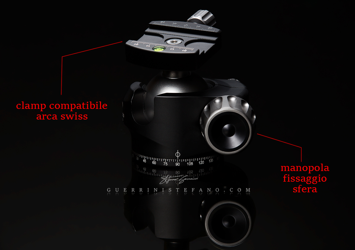 La clamp che di base monta l’LH-55, compatibile arca swiss, è munita di una chiusura a vite la cui manopola metallica è ben frenata e restituisce una piacevole resistenza al movimento.